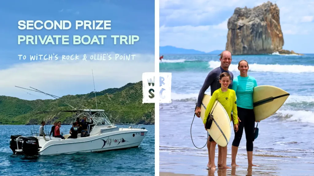 The runner-up prize is just as epic: a private boat trip to Witch’s Rock and Ollie’s Point, two of Costa Rica’s most legendary surf breaks. You and your group will score empty lineups, stunning scenery, and a day filled with waves straight out of a surf movie.
